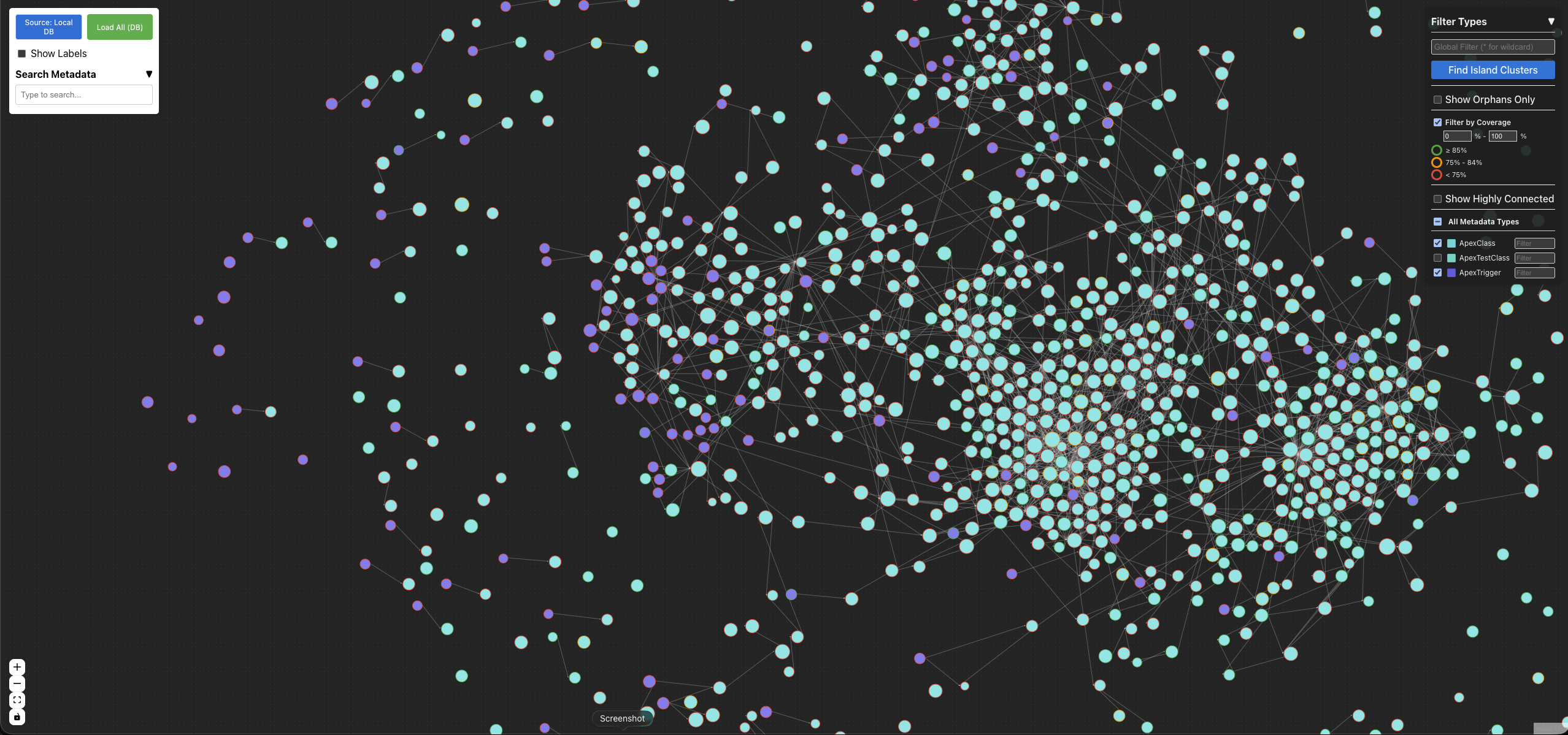 - Find large metadata: The size of the nodes corresponds to the size of the metadata, especially useful when identifying “God Classes” that are doing too much